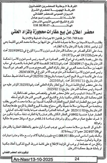 | Paru dans le journal : النصر | |