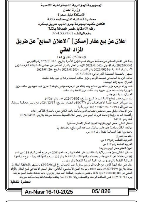 Il sera procédé à la vente au plus offrant et dernier enchérisseur le :