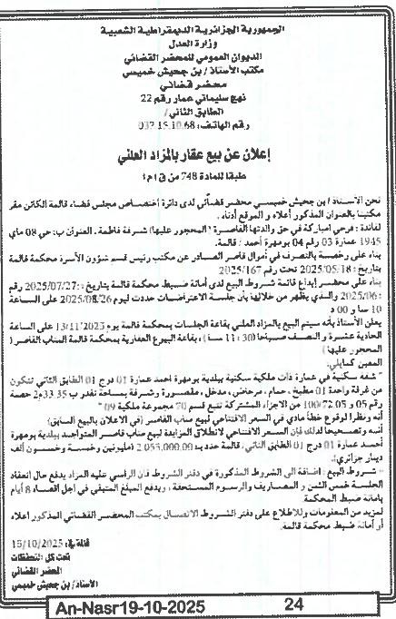 Il sera procédé à la vente au plus offrant et dernier enchérisseur le :