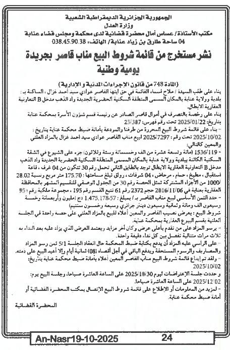 Il sera procédé à la vente au plus offrant et dernier enchérisseur le :