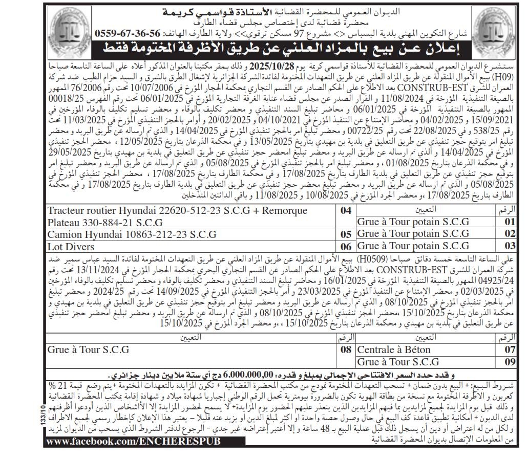 Il sera procédé à la vente au plus offrant et dernier enchérisseur le :