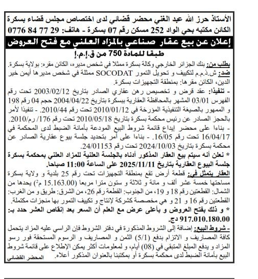 Il sera procédé à la vente au plus offrant et dernier enchérisseur le :