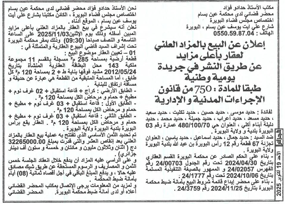 | Paru dans le journal : الجزائر | |