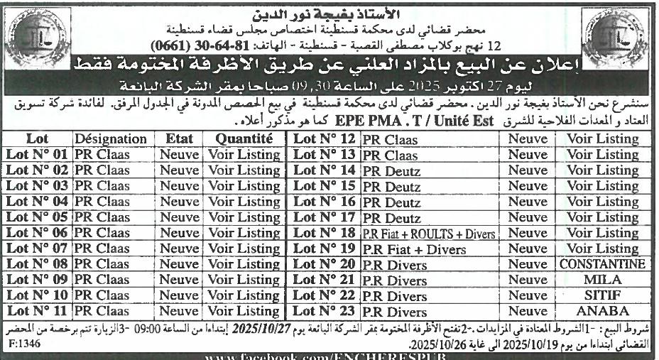 Il sera procédé à la vente au plus offrant et dernier enchérisseur le :