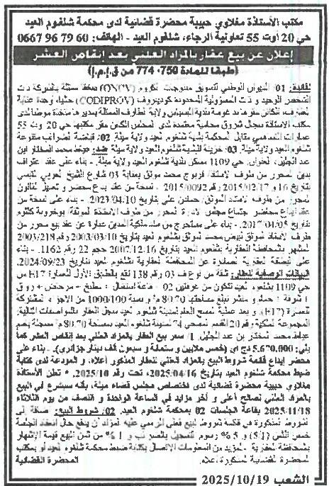 Il sera procédé à la vente au plus offrant et dernier enchérisseur le :