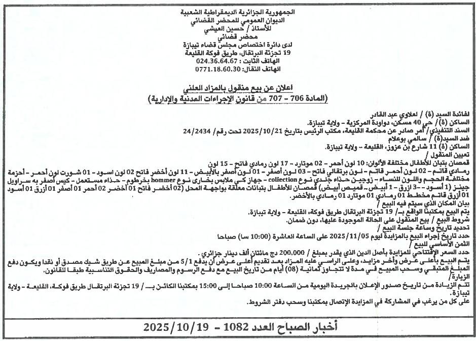 Il sera procédé à la vente au plus offrant et dernier enchérisseur le :
