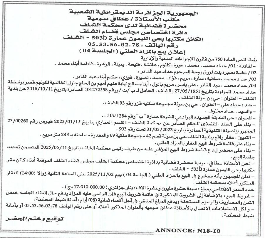| Wilaya : Chlef | |