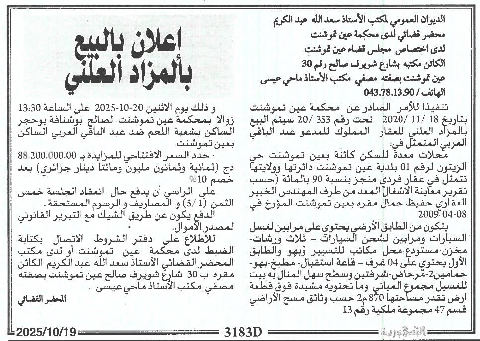 Il sera procédé à la vente au plus offrant et dernier enchérisseur le :