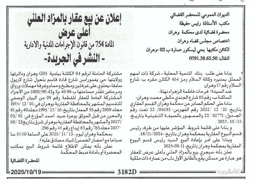 Il sera procédé à la vente au plus offrant et dernier enchérisseur le :