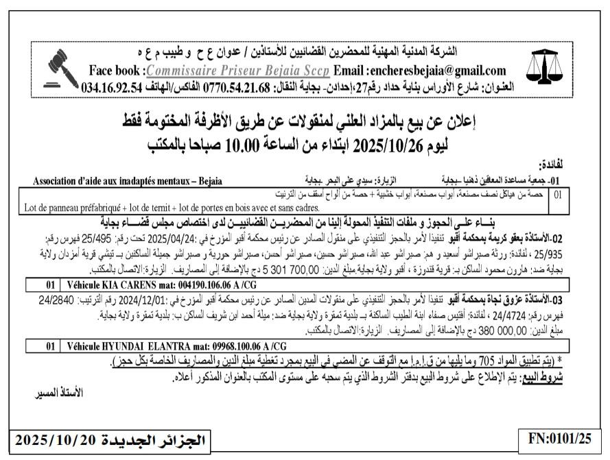 Il sera procédé à la vente au plus offrant et dernier enchérisseur le :
