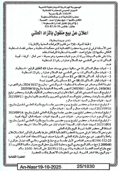 Il sera procédé à la vente au plus offrant et dernier enchérisseur le : 27/10/2025