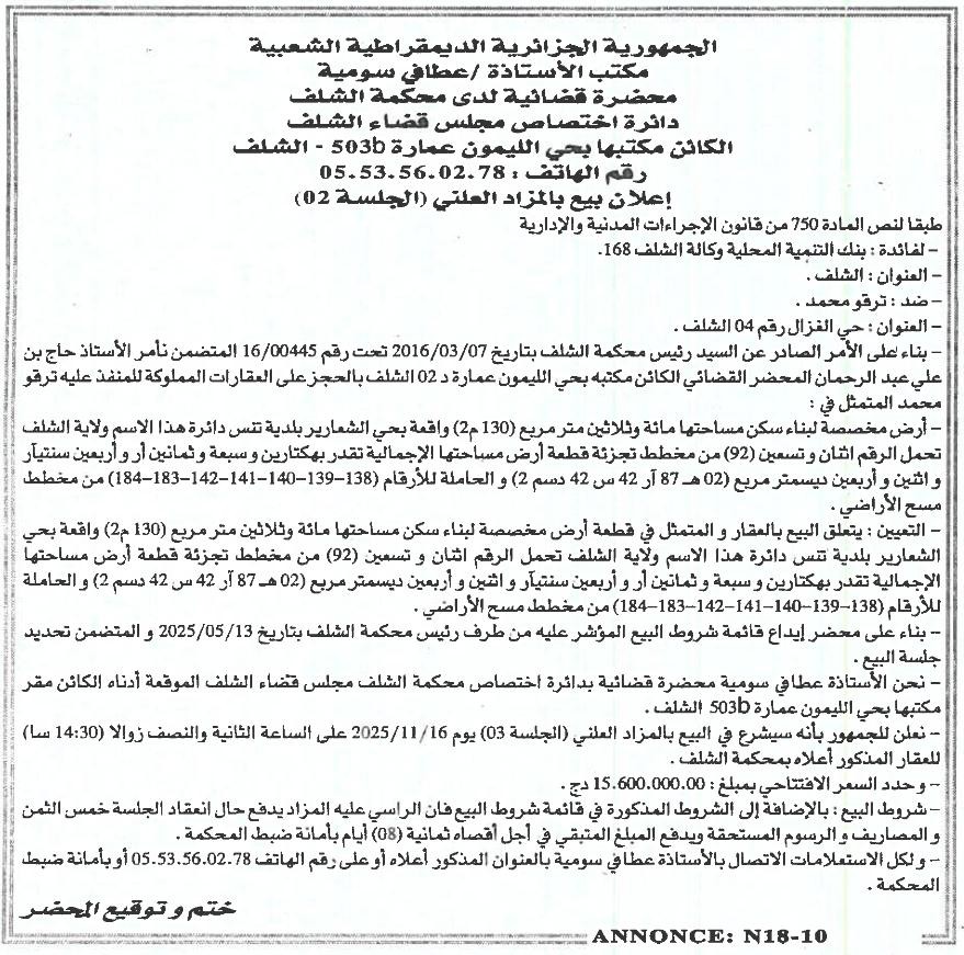 Il sera procédé à la vente au plus offrant et dernier enchérisseur le :