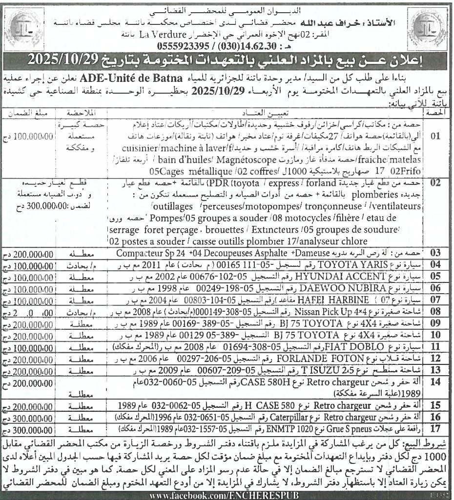 Il sera procédé à la vente au plus offrant et dernier enchérisseur le :