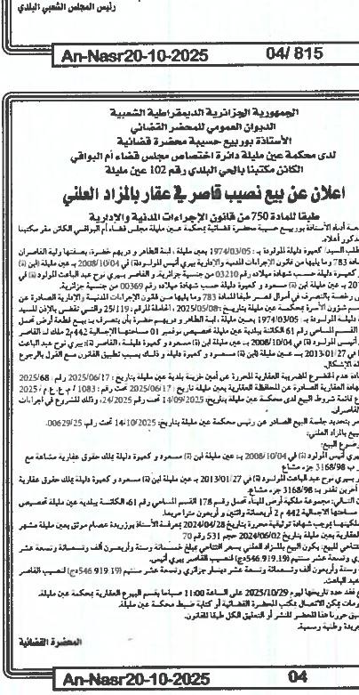 Il sera procédé à la vente au plus offrant et dernier enchérisseur le :