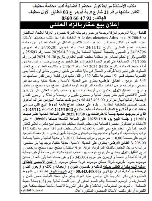 | Objet: Vente d'un immobilier | |
