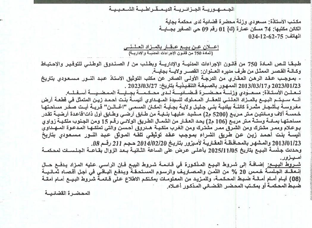 Il sera procédé à la vente au plus offrant et dernier enchérisseur le :