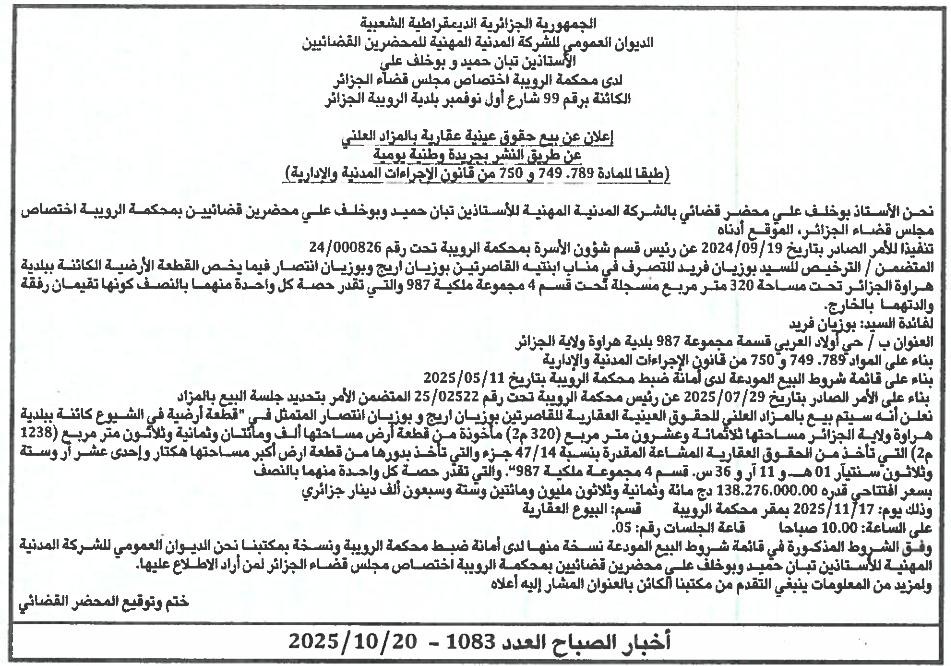 Il sera procédé à la vente au plus offrant et dernier enchérisseur le :