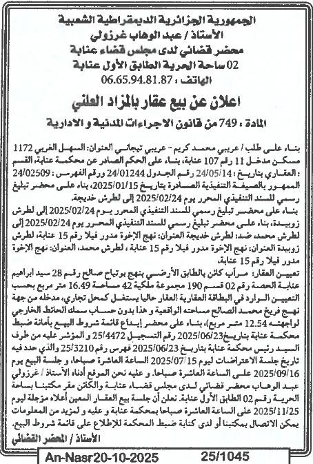 Il sera procédé à la vente au plus offrant et dernier enchérisseur le :