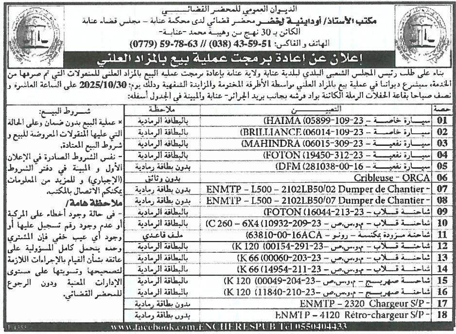 Il sera procédé à la vente au plus offrant et dernier enchérisseur le :
