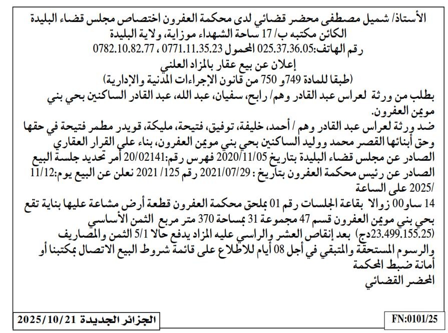 | Paru dans le journal : الجزائر الجديدة | |