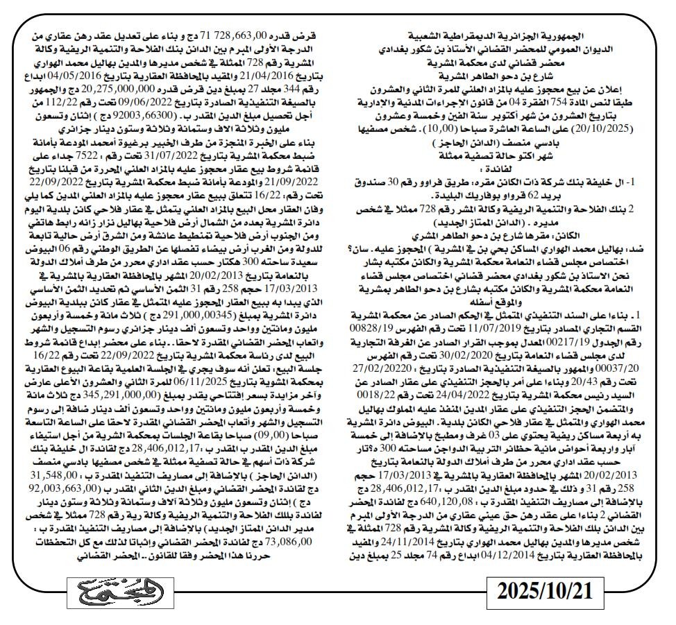 Il sera procédé à la vente au plus offrant et dernier enchérisseur le :