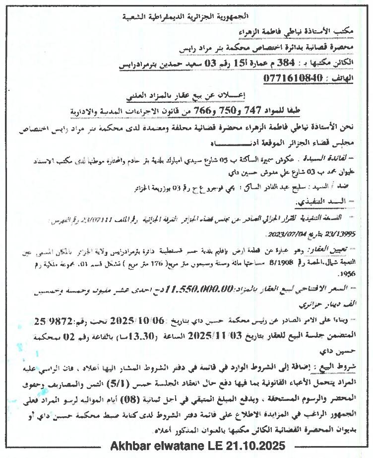 | Paru dans le journal : أخبار الوطن | |