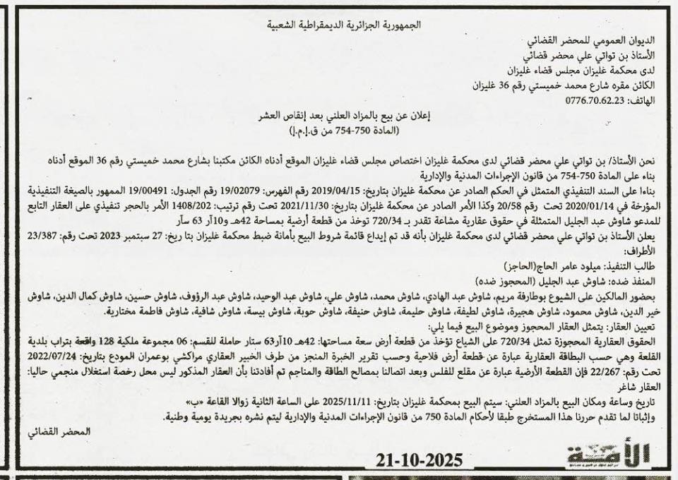 Il sera procédé à la vente au plus offrant et dernier enchérisseur le : 11/11/2025';