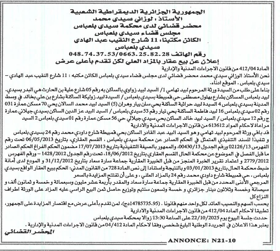 Il sera procédé à la vente au plus offrant et dernier enchérisseur le :