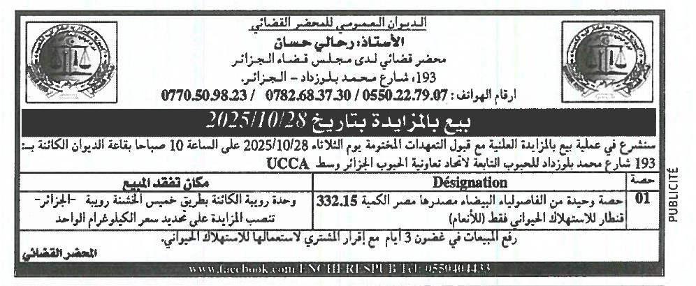 Il sera procédé à la vente au plus offrant et dernier enchérisseur le :