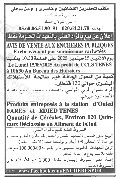Il sera procédé à la vente au plus offrant et dernier enchérisseur le :
