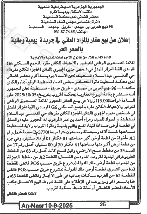 Il sera procédé à la vente au plus offrant et dernier enchérisseur le :