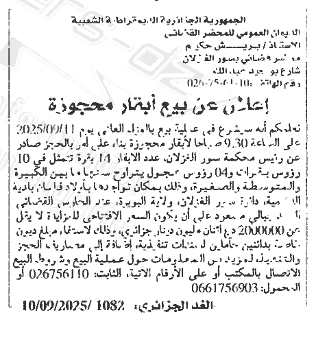 Il sera procédé à la vente au plus offrant et dernier enchérisseur le :