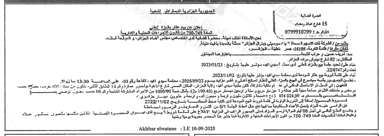 Il sera procédé à la vente au plus offrant et dernier enchérisseur le :