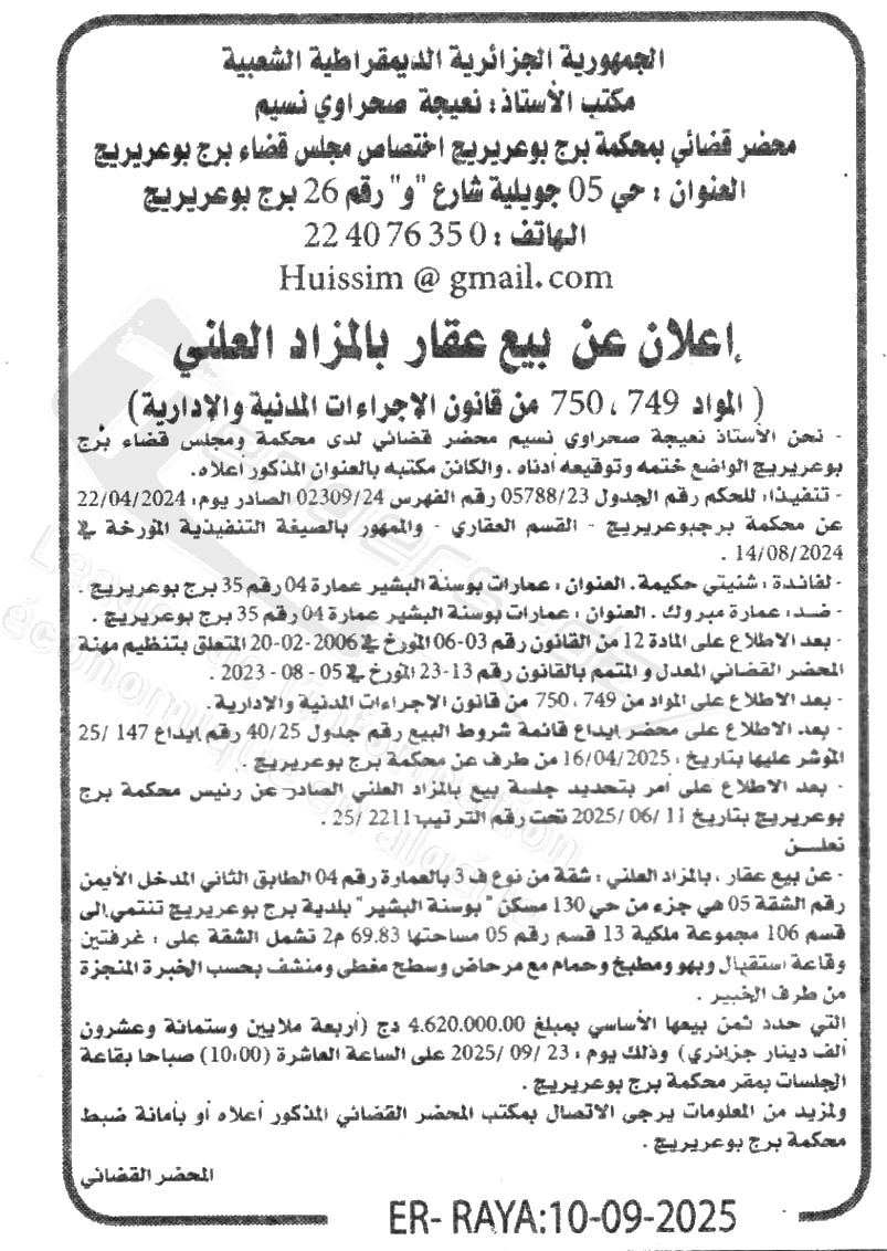 Il sera procédé à la vente au plus offrant et dernier enchérisseur le :