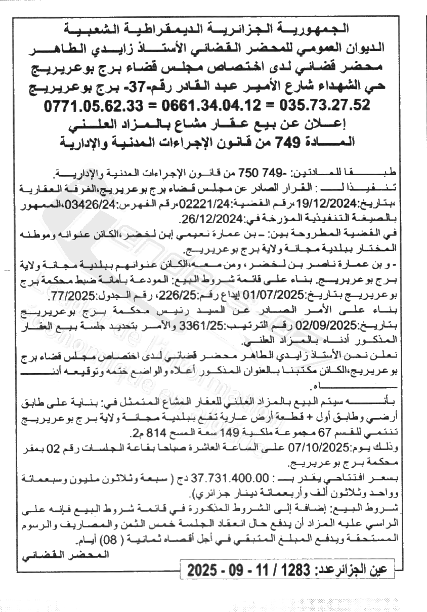 Il sera procédé à la vente au plus offrant et dernier enchérisseur le :