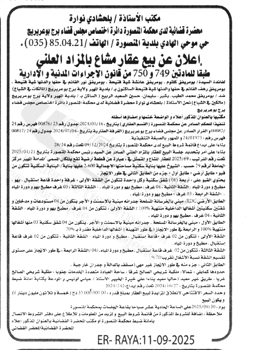Il sera procédé à la vente au plus offrant et dernier enchérisseur le :