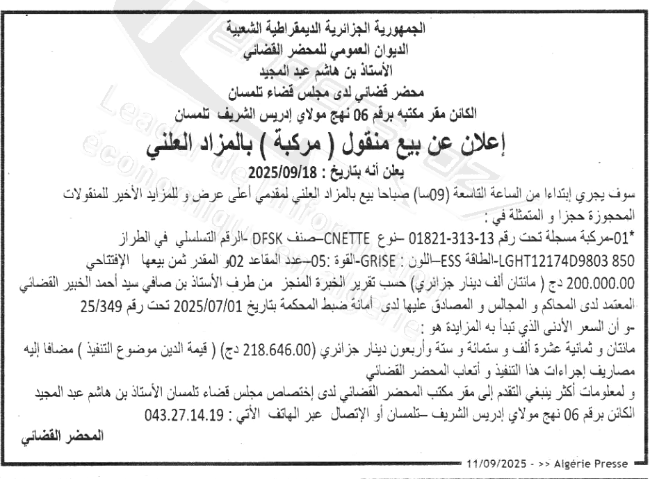 Il sera procédé à la vente au plus offrant et dernier enchérisseur le :