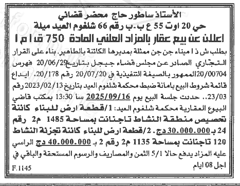 Il sera procédé à la vente au plus offrant et dernier enchérisseur le :