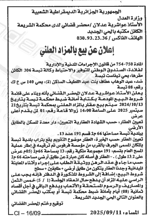 Il sera procédé à la vente au plus offrant et dernier enchérisseur le :