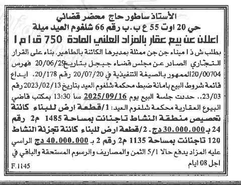 Il sera procédé à la vente au plus offrant et dernier enchérisseur le :