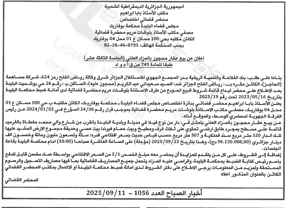 Il sera procédé à la vente au plus offrant et dernier enchérisseur le :