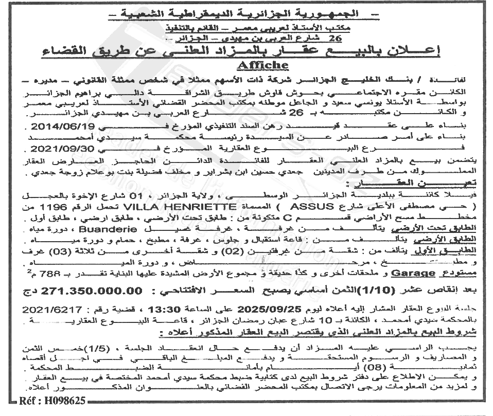 Il sera procédé à la vente au plus offrant et dernier enchérisseur le :