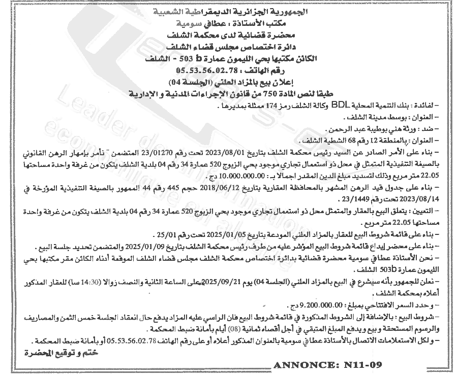 Il sera procédé à la vente au plus offrant et dernier enchérisseur le :