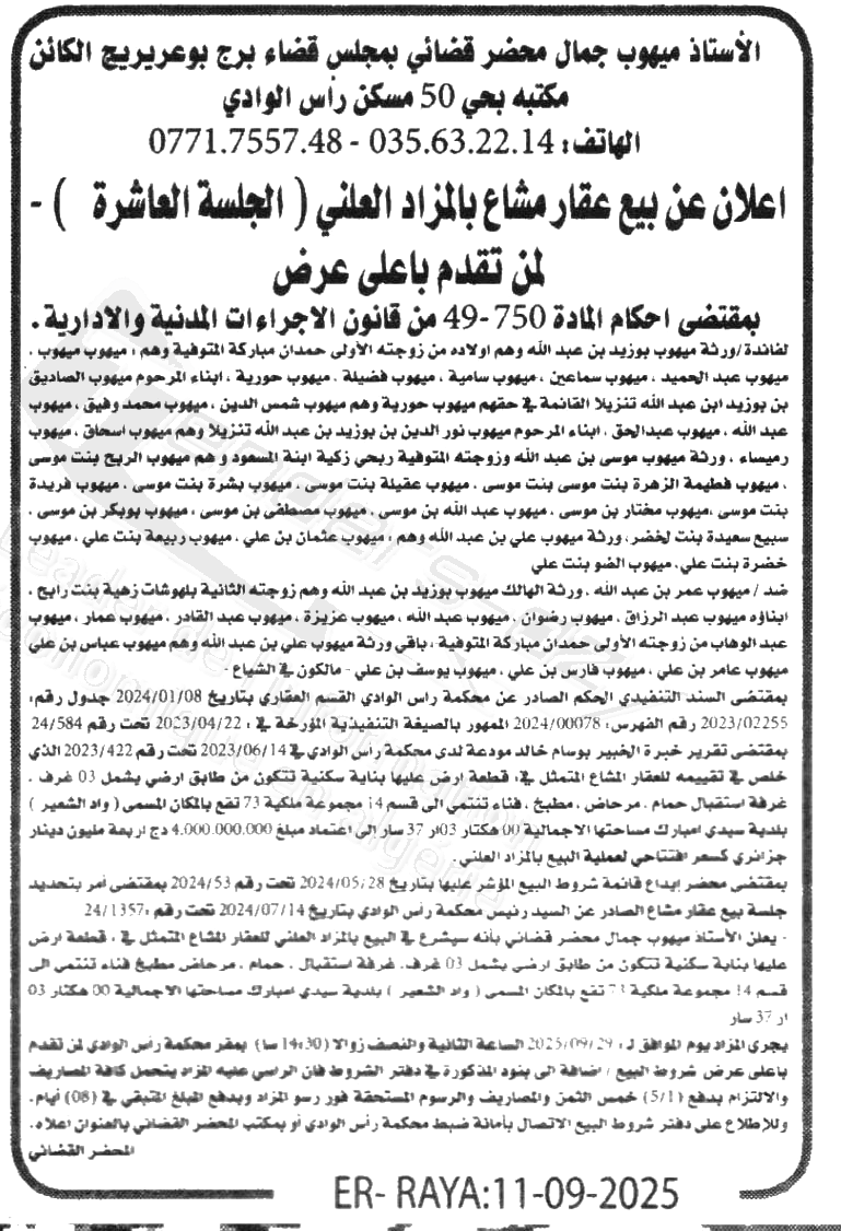 Il sera procédé à la vente au plus offrant et dernier enchérisseur le :