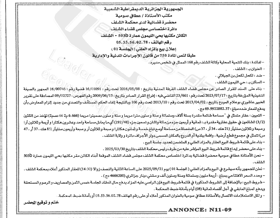 | Wilaya : Chlef | |