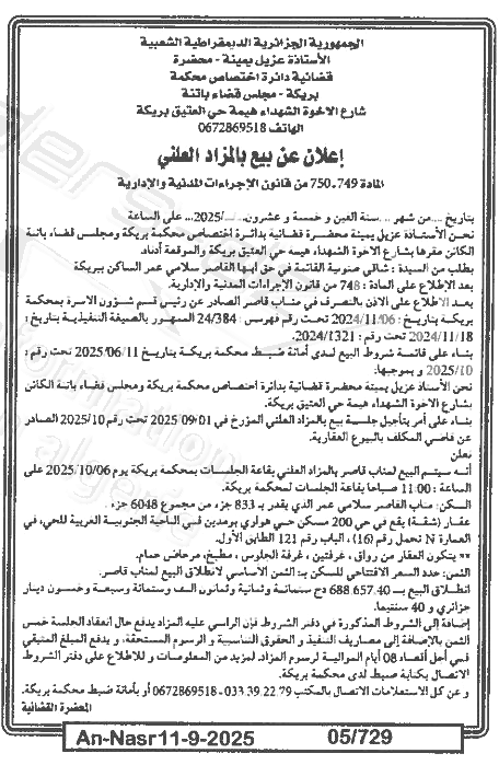 Il sera procédé à la vente au plus offrant et dernier enchérisseur le :