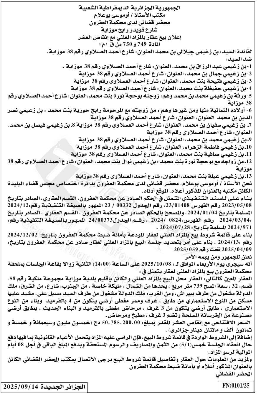 Il sera procédé à la vente au plus offrant et dernier enchérisseur le :