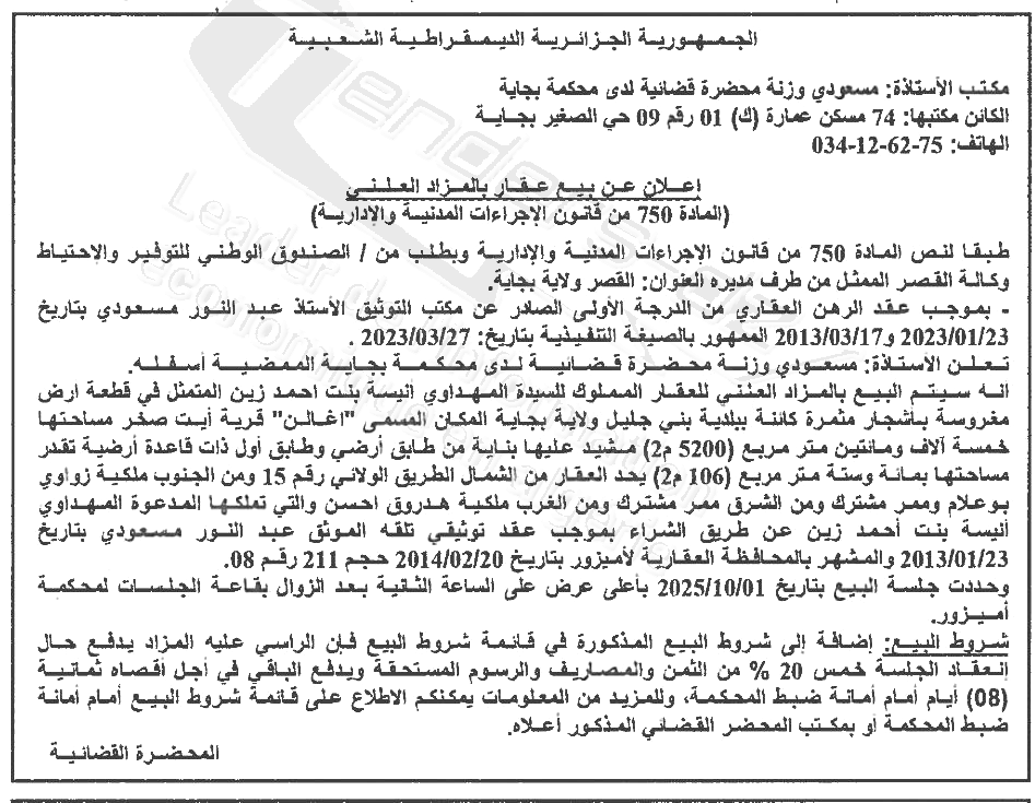 Il sera procédé à la vente au plus offrant et dernier enchérisseur le :