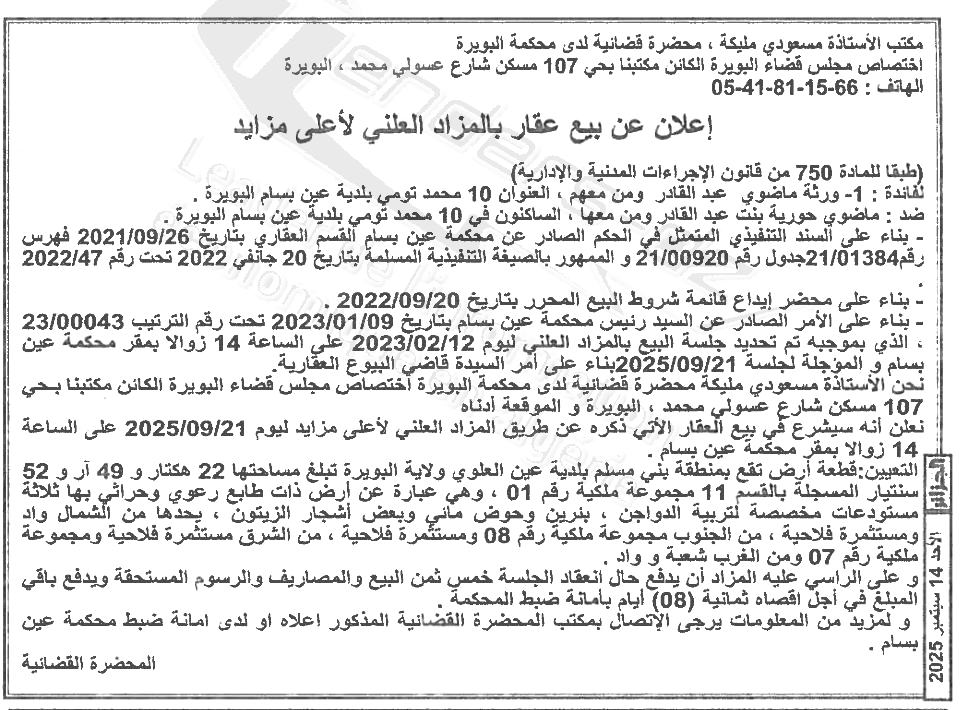 Il sera procédé à la vente au plus offrant et dernier enchérisseur le :