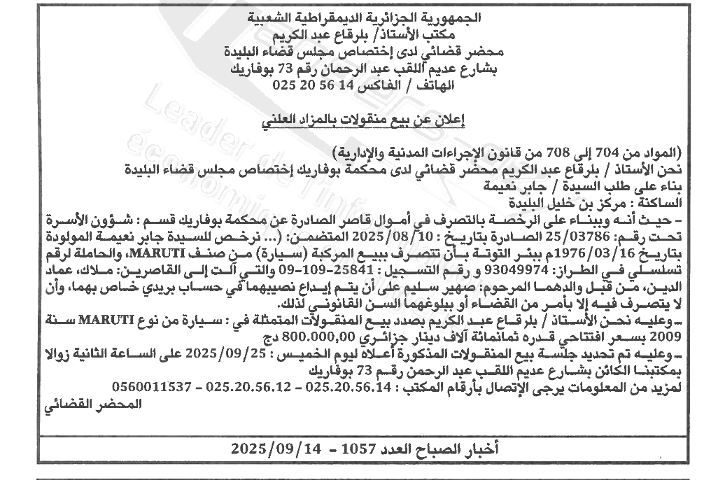 Il sera procédé à la vente au plus offrant et dernier enchérisseur le :